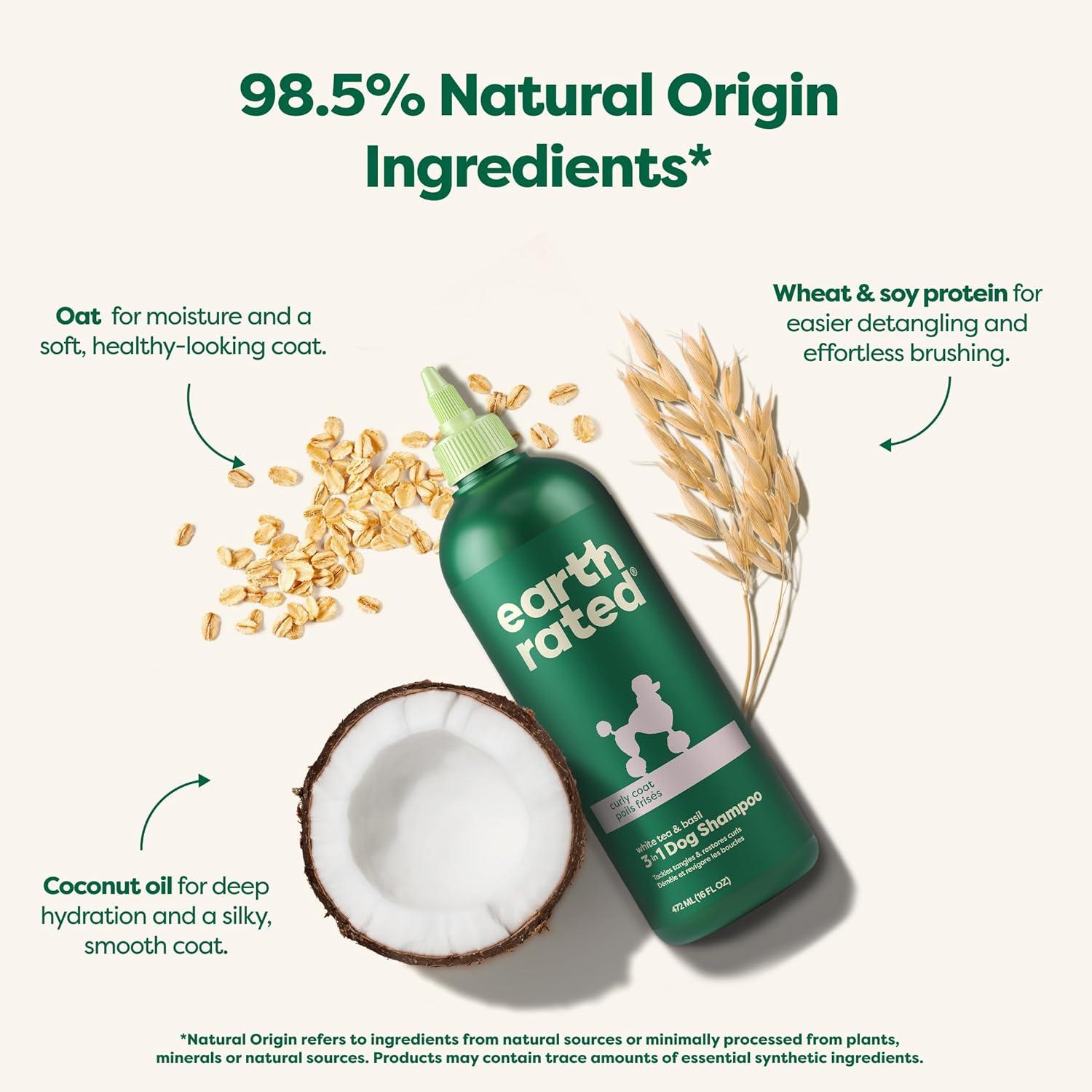 Earth Rated 3-in-1 Soothing Dog Shampoo and Conditioner, Deodorizing Oatmeal Shampoos for Dogs and Puppies, Great for Smelly Pets, White Tea and Basil Scent, 16 oz(Detangling Shampoo)