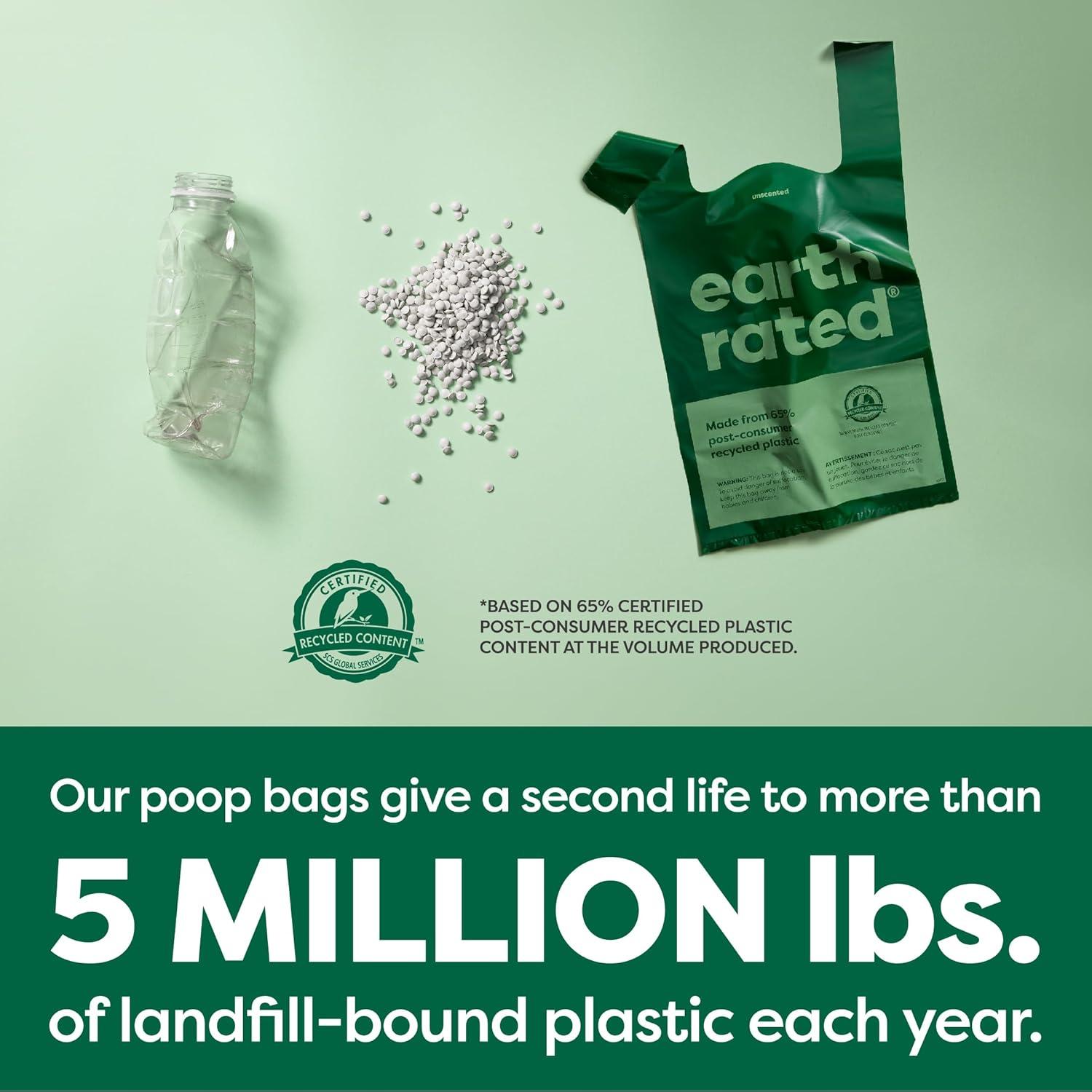 Earth Rated Odor-Blocking Poop Bags for Dogs with 3X Protect, Guaranteed to Block Smells & Leak-Proof Performance, Conceals Smell & Mess, Unscented, 108 Bags(600 Bags)