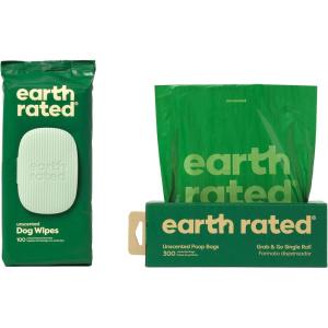 Earth Rated Dog Walking Essentials Bundle – Includes 300 Dog Waste Bags on Single Bulk Roll and 100 Dog Grooming Wipes, Unscented