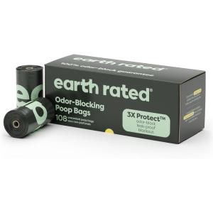 Earth Rated Odor-Blocking Poop Bags for Dogs with 3X Protect, Guaranteed to Block Smells & Leak-Proof Performance, Conceals Smell & Mess, Unscented, 108 Bags(108 Bags)