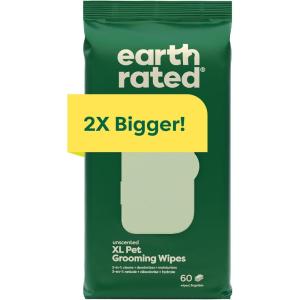Earth Rated XL Pet Wipes for Dogs & Cats, 3-in-1 Unscented Hypoallergenic Cleaning, Deodorizing and Hydrating Extra Large Grooming for Body, Paws and Butt, Unscented, 60 Count(Unscented)