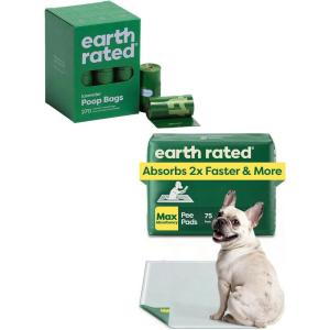 Earth Rated Dog Clean-Up Bundle Leak-Proof Poop 270 Bags, Lavender Scented, & Max Absorbency Puppy Pee Pads, Large, 75 Count