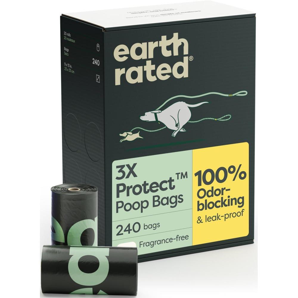 Earth Rated Odor-Blocking Poop Bags for Dogs with 3X Protect, Guaranteed to Block Smells & Leak-Proof Performance, Conceals Smell & Mess, Unscented, 240 Count(240 Bags)