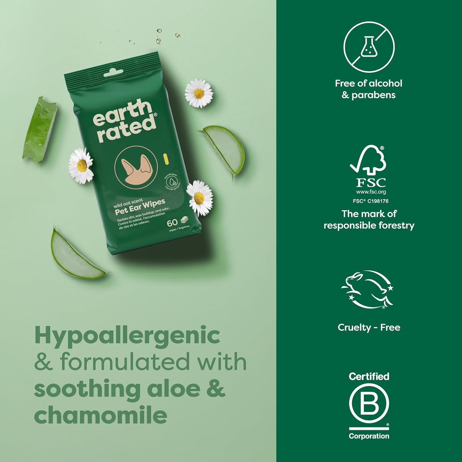 Earth Rated XL Pet Wipes for Dogs & Cats, 3-in-1 Unscented Hypoallergenic Cleaning, Deodorizing and Hydrating Extra Large Grooming for Body, Paws and Butt, Unscented, 60 Count(Wild Oat)